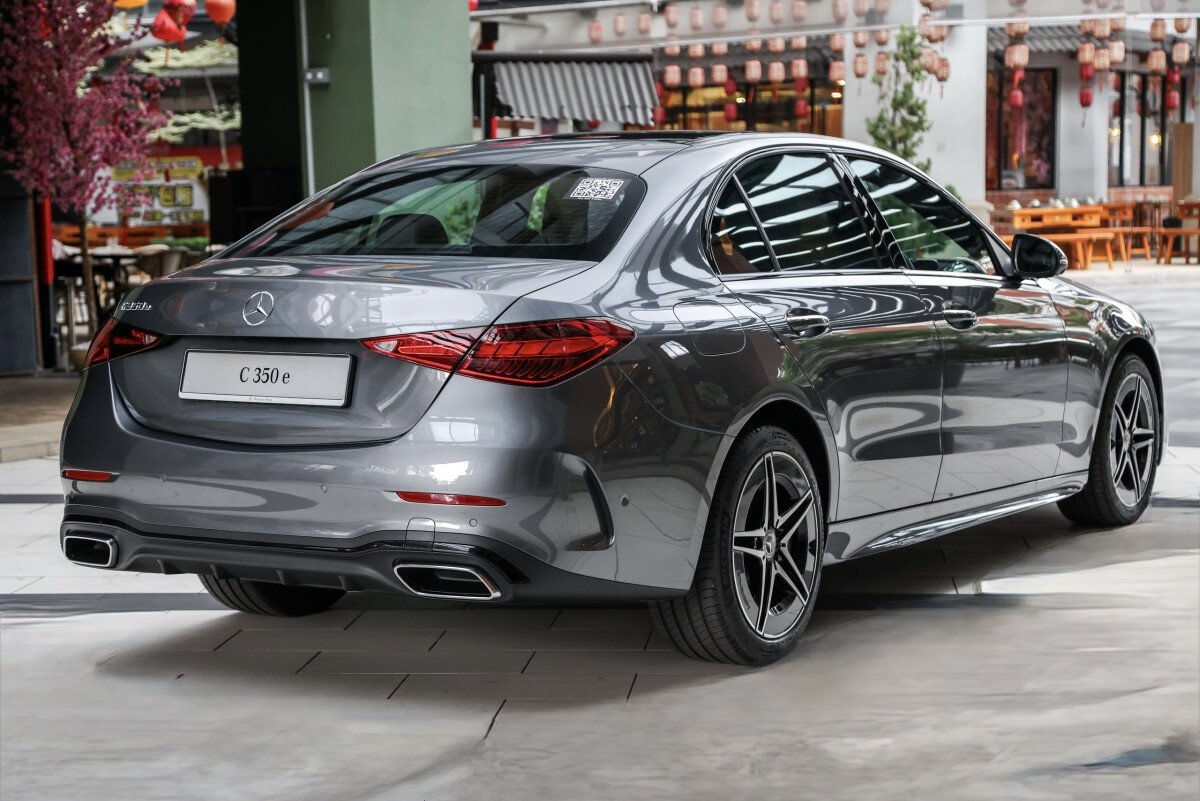 The MercedesโBenz C350e AMG Line is a plugโin hybrid luxury sedan combining a 2.0โlitre turbo petrol engine with an electric motor for a combined ~313โฏhp and 550โฏNm, driving the rear wheels through a 9โspeed 9GโTronic gearbox. It features AMG Line exterior styling with 18โณ alloy wheels and Night Package accents, a panoramic sunroof, Digital Light headlights, and a premium interior with AMG sport seats, Nappa leather, and MBUX infotainment with 12.3โณ and 11.9โณ screens. Standard safety tech includes 360ยฐ camera, Blind Spot Assist, Active Brake Assist, and more. ย