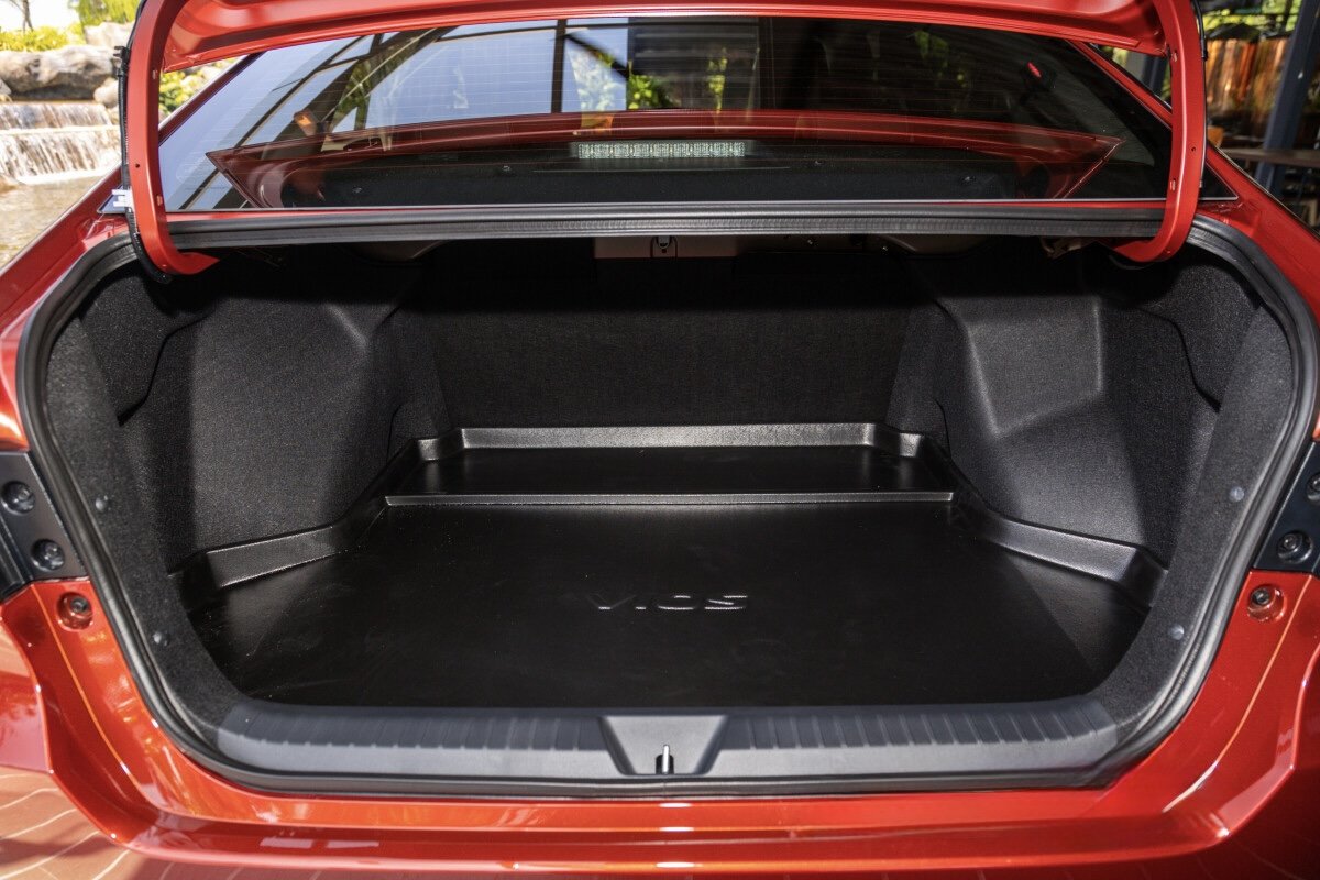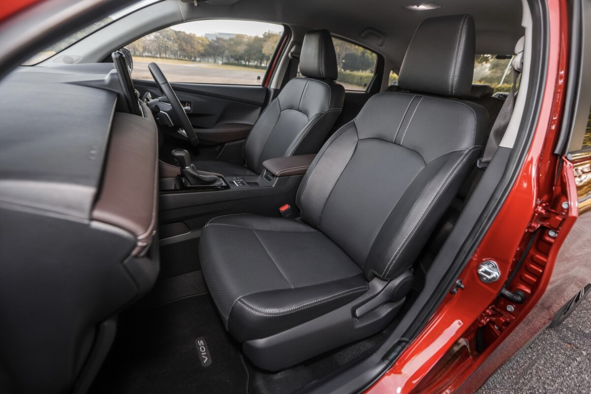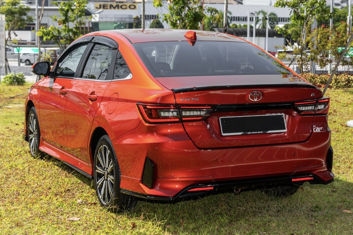 Toyota Vios G โ A higher-spec compact 5-seat sedan powered by a 1.5 L naturally-aspirated petrol engine producing 106 bhp and 138 Nm, paired with a 7-speed CVT automatic driving the front wheels. It delivers smooth, efficient everyday performance with balanced fuel economy. Compared with the base E, the G adds 17โณ alloy wheels, automatic climate control, paddle shifters, electric parking brake with auto-hold, adaptive cruise control, leather-wrapped steering, ambient lighting, blind-spot monitor and rear cross-traffic alert, plus a 9โณ touchscreen with Apple CarPlay/Android Auto and 360ยฐ camera for enhanced comfort, tech and safety.ย